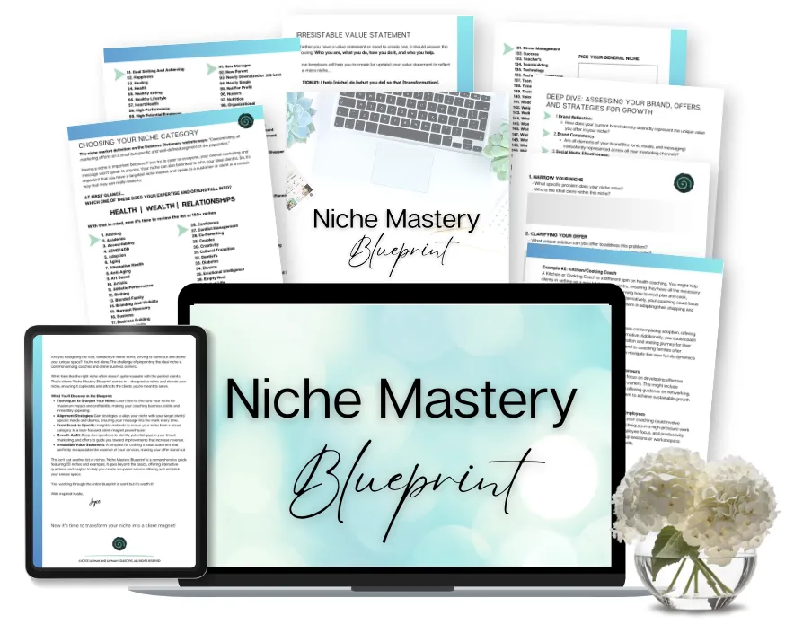 "Niche Mastery Blueprint" is specifically designed to refine your chosen niche, ensuring it's not just targeted, but irresistibly appealing to those you aim to serve.
