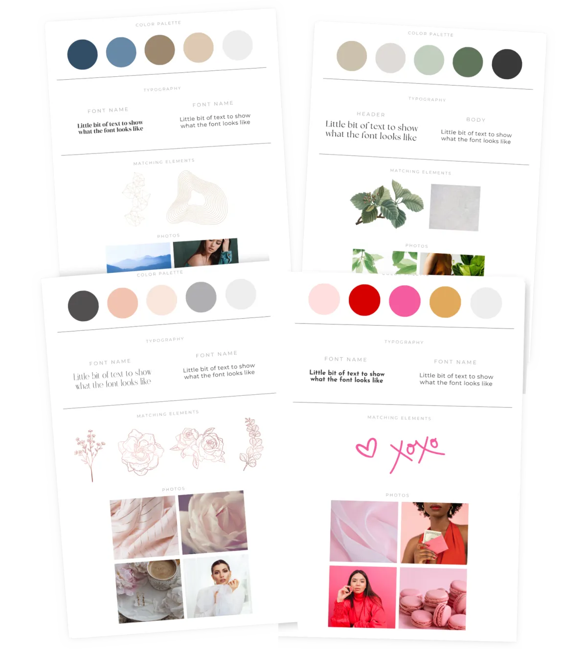 7 different style vault brand boards filled with colors, fonts, and stylistic touches. Perfect for sparking creativity and giving your digital product a unique, polished look that reflects your brand identity.